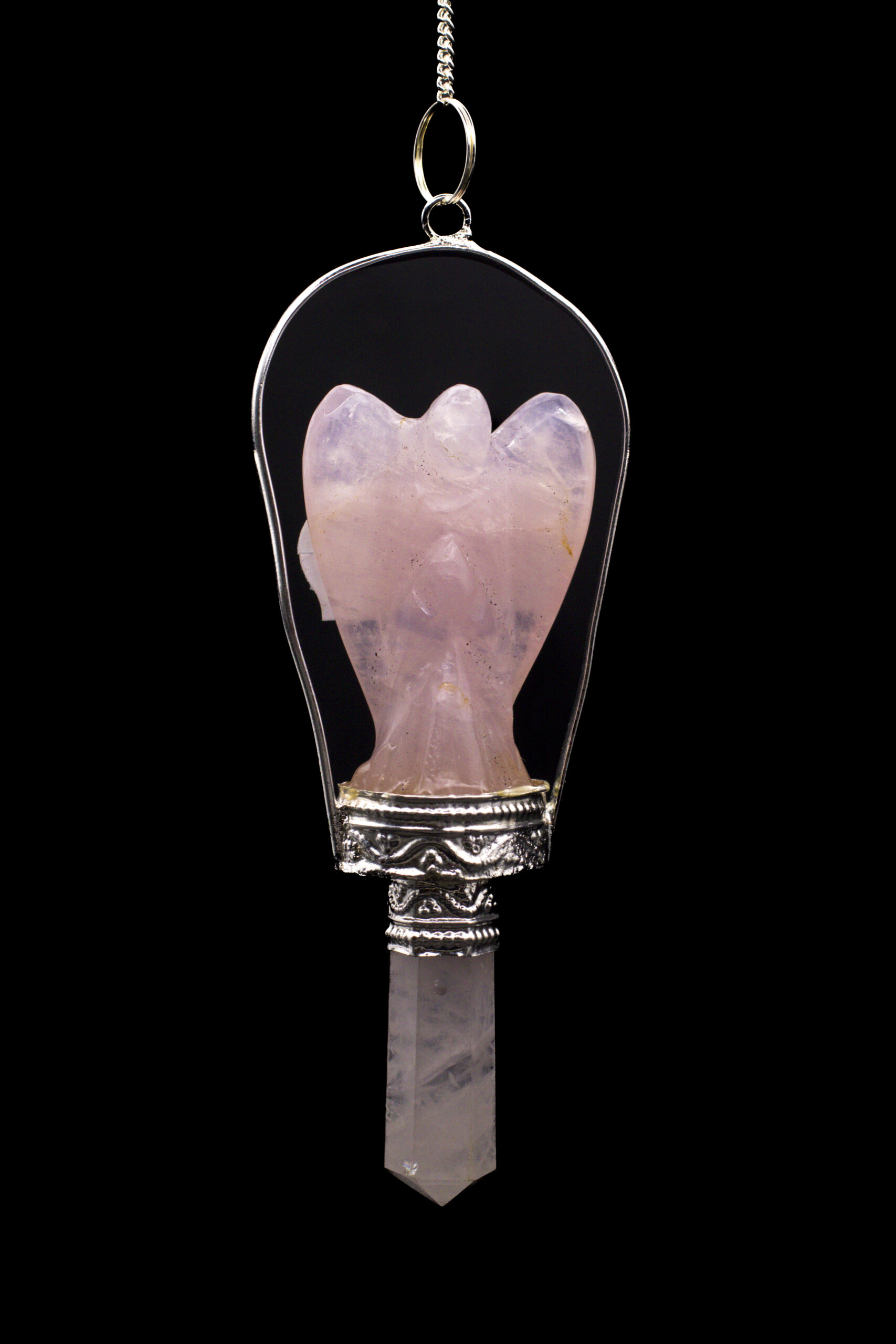A Rose Quartz Angel and Point Pendulum