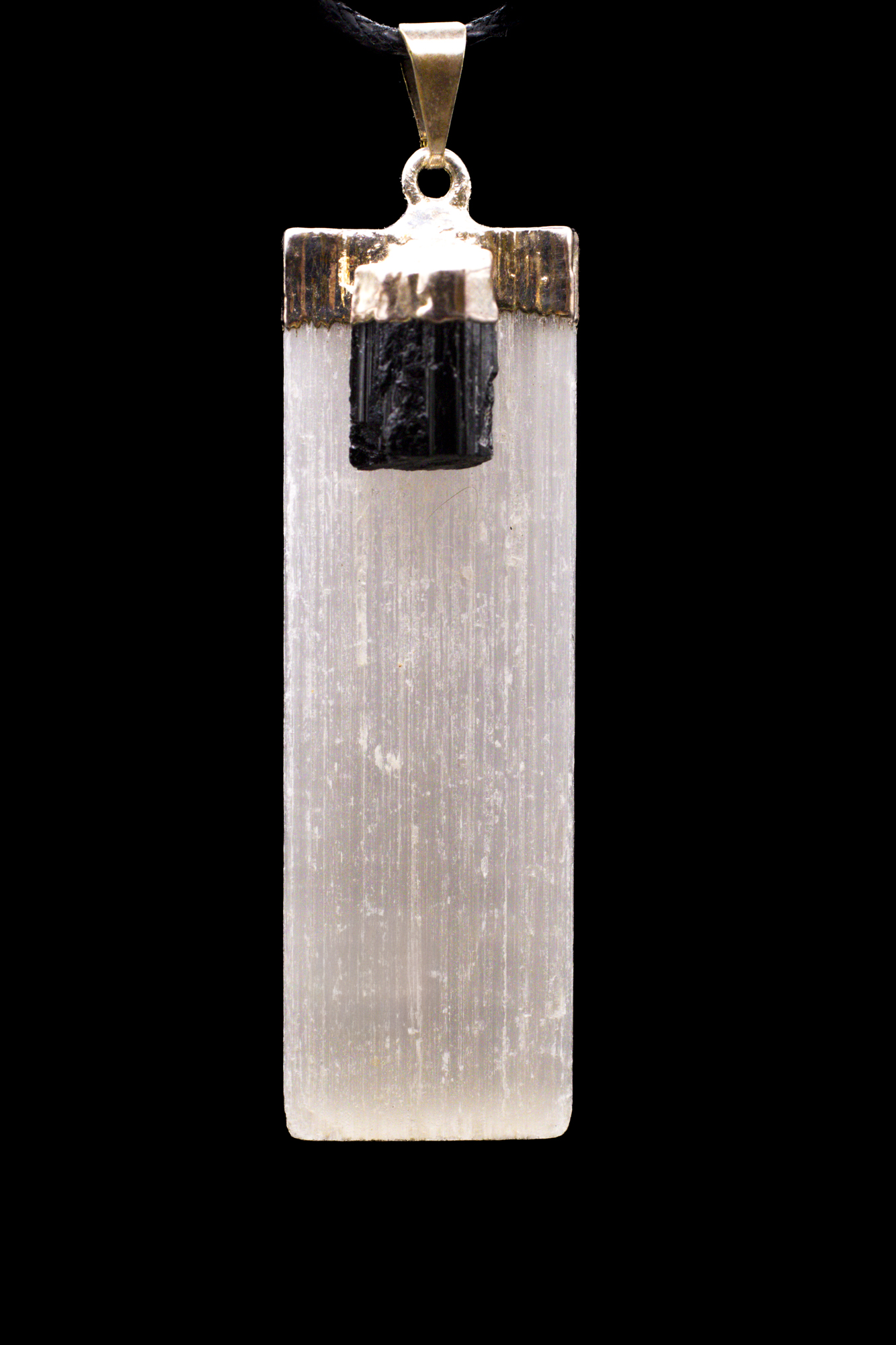 Selenite And Black Tourmaline pendant
